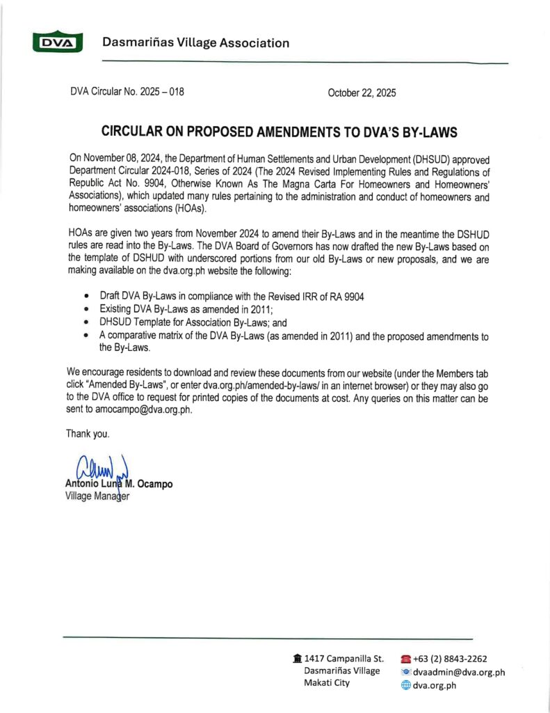 Circular 2025-018 – Circular on Proposed Amendments to DVA’s By-Laws