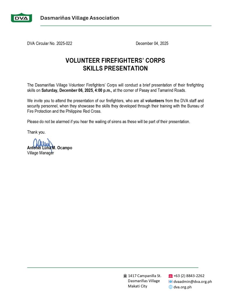 Circular 2025-022 – Volunteer Firefighters’ Corps Skills Presentation