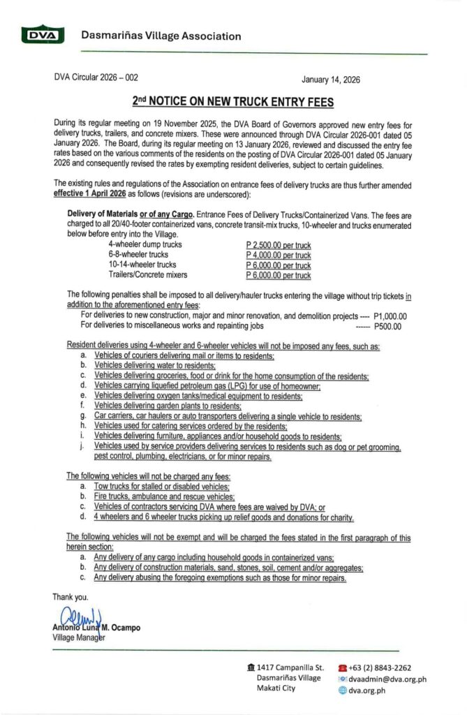 Circular 2026-002 – 2nd Notice on the New Truck Entry Fees